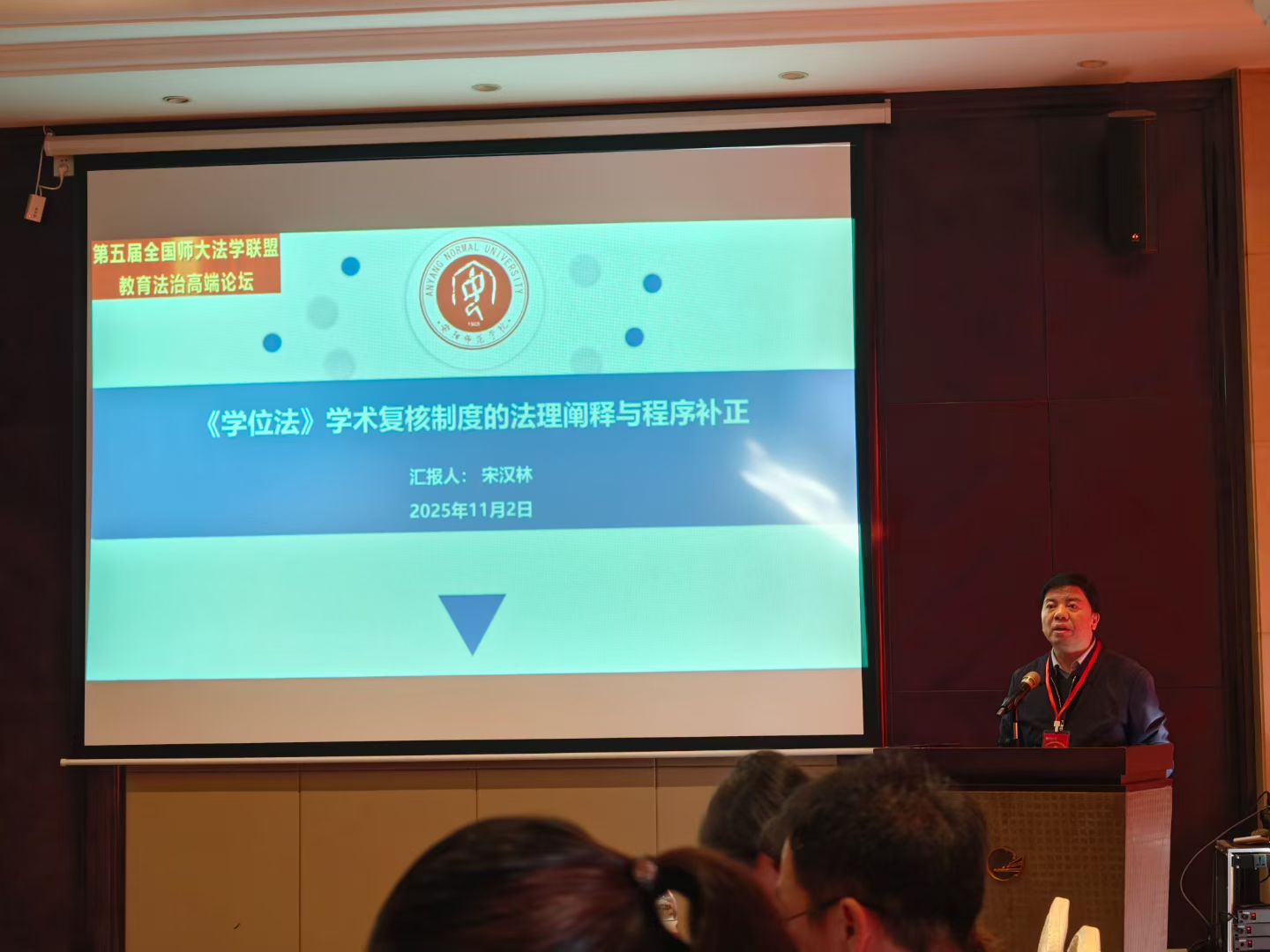 2025年11月2日,第五届全国师大法学联盟教育法治高端论坛在河南师范大学开幕。研究生处处长宋汉林教授应邀参加了本次论坛,并在第3平行分论坛作了题为《<学位法>学术复核制度的法理阐释与程序补正》的学术报告,参与了相关主题的学术讨论。